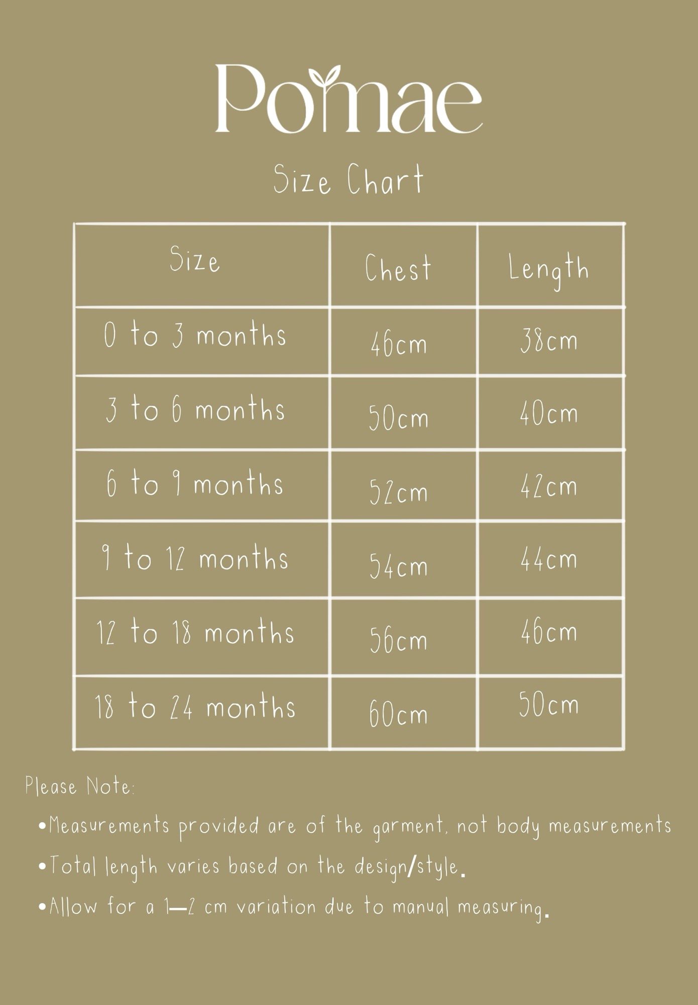 • Sizes: 0–3M, 3–6M, 6–12M, 12–18M ,18-24M